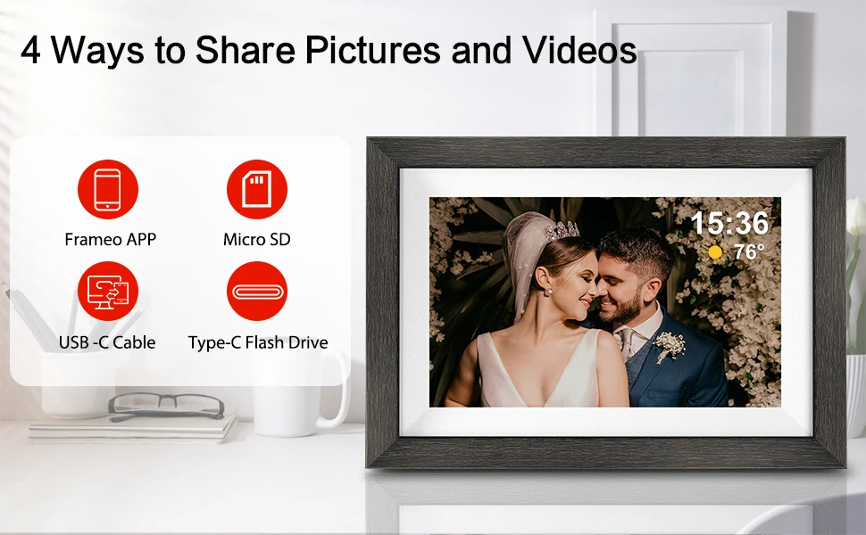 2 Digital photo frame supports Frameo software, and is free to transfer photos