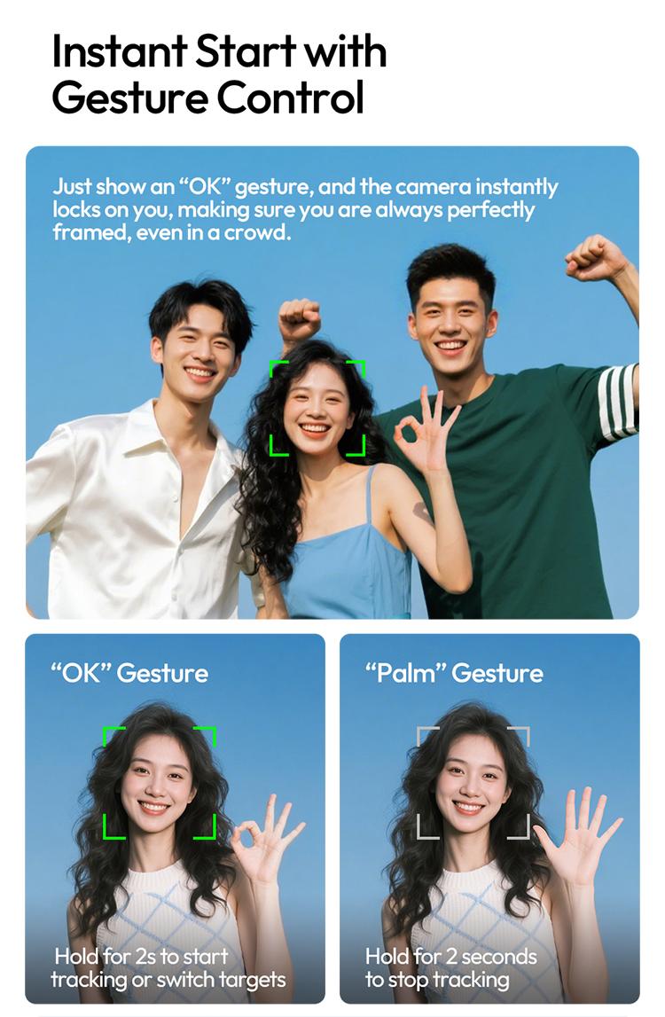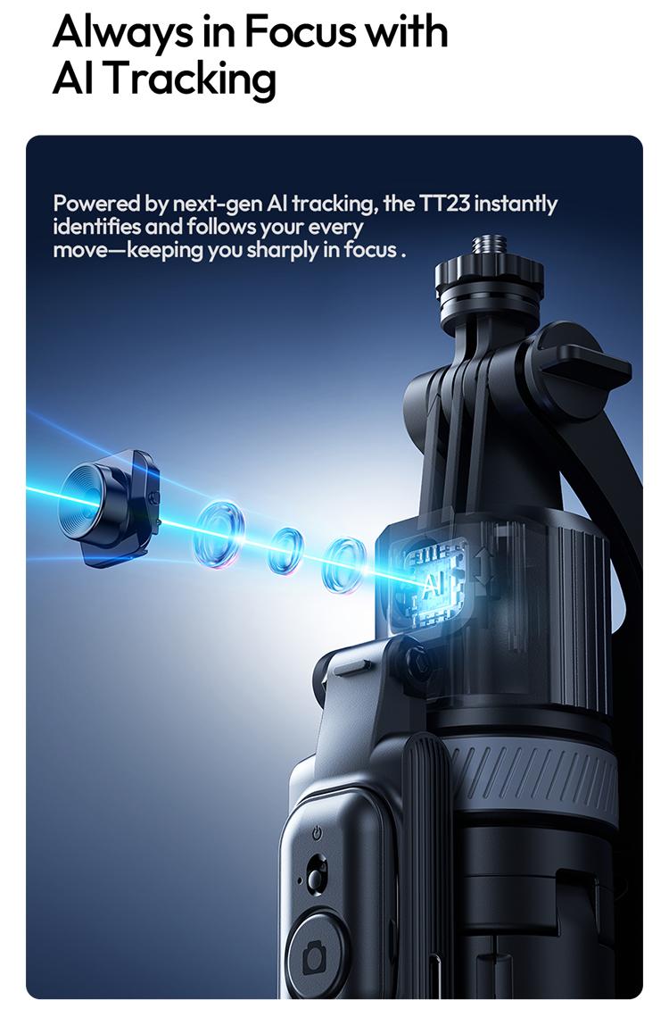The ULANZI TT23 64" Auto Face Tracking Tripod transforms your photography. It features smart gesture control with 360° auto face tracking. Simply use "👌" to activate tracking or "🖐️" to pause. This ensures sharp, precise shots, even while moving. Perfect for iPhone 17/16/15/14/13 and Android devices.
